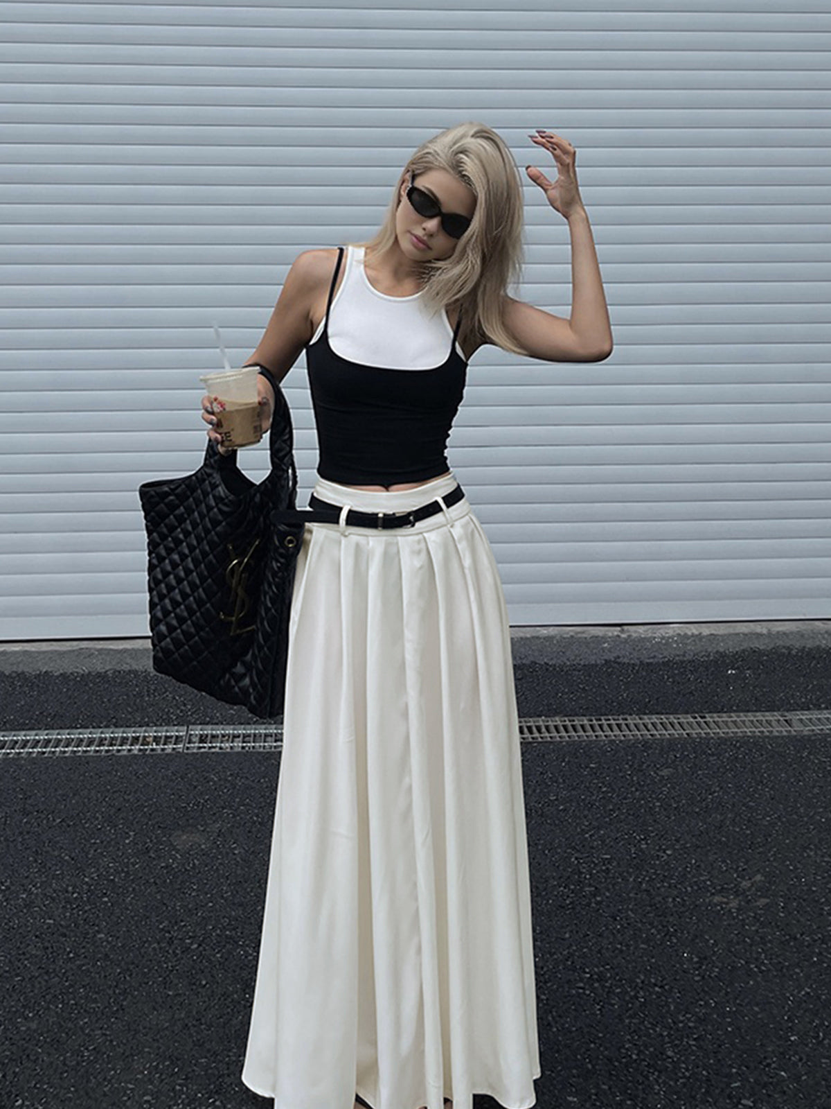 Kuşaklı Pileli Uzun Etek