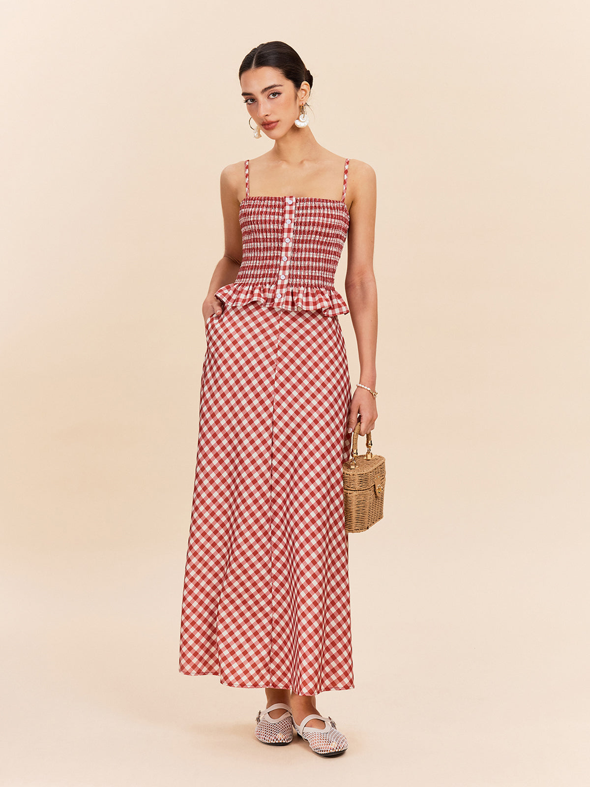 Şık Kareli Cepli Etek ile Rahat Stil