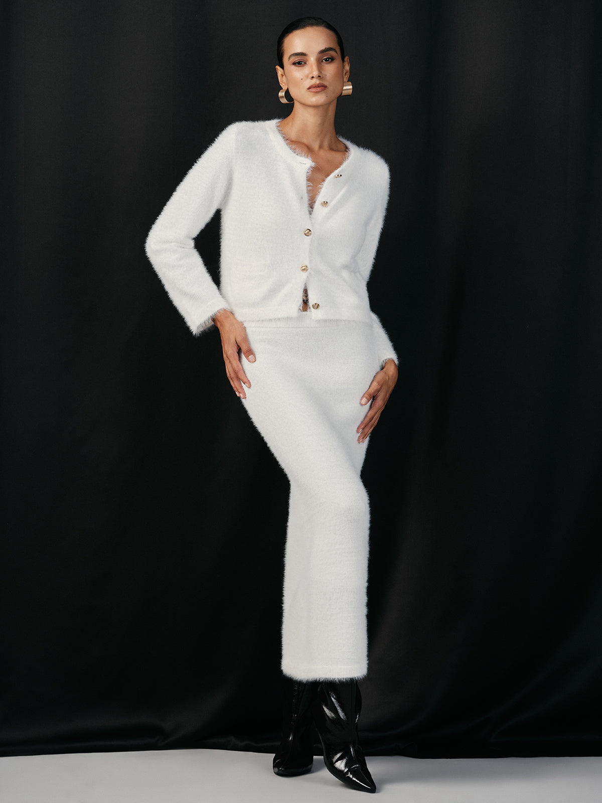 Füslü Metal Düğmeli Hırka ve Etek Takımı